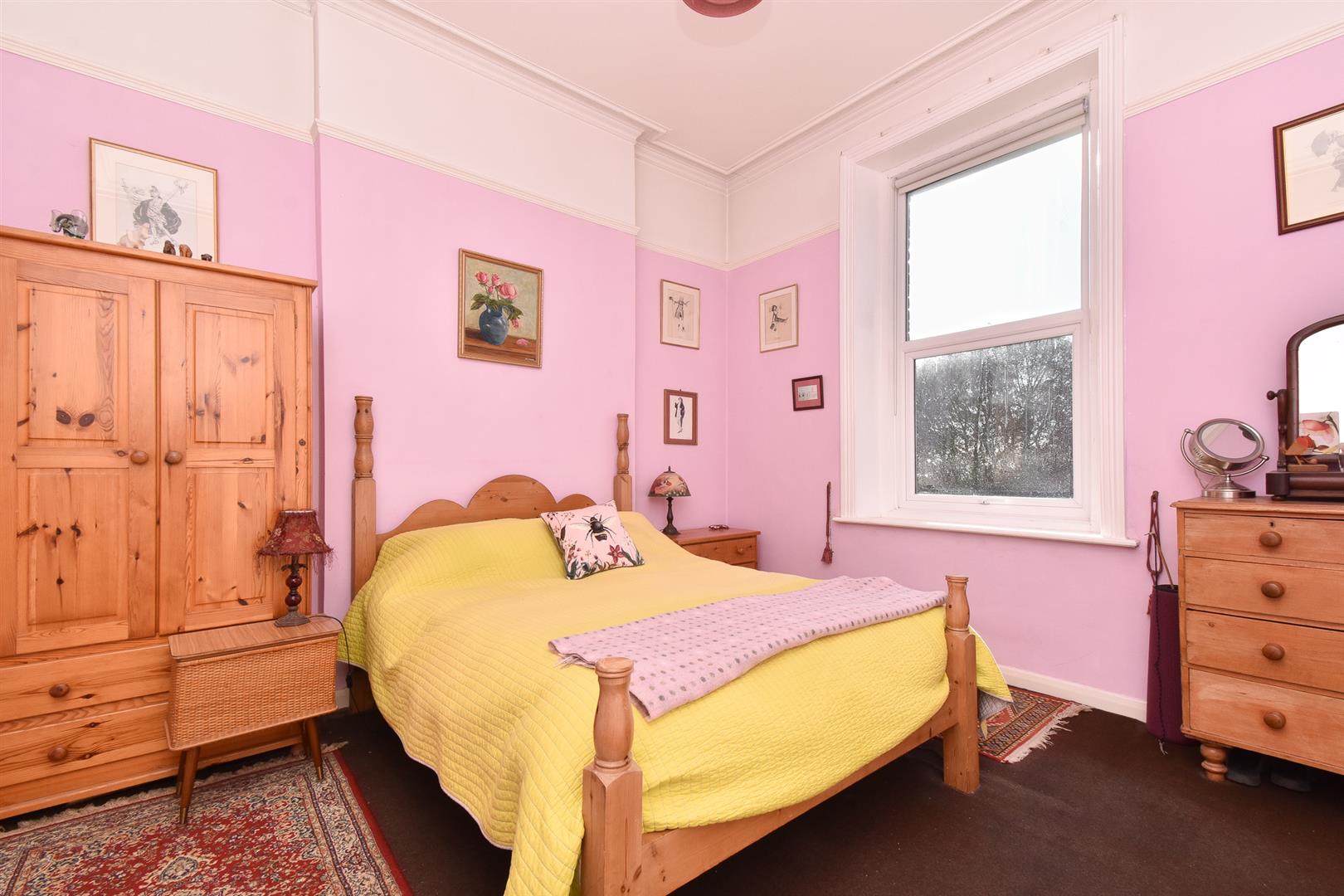 A bright and spacious TWO BEDROOM APARTMENT set in the sought after location of St.Leonards, positioned close to Markwick Gardens, a short walk from The Green tennis club and the seafront. The hub of St.Leonards-On-Sea is easily accessible on foot and offers a collection of local independent shops, antique stores, eateries and a mainline railway station with connections to London. The accommodation here spans the first floor of this period residence and is arranged as an impressive living room which benefits from A LARGE BAY WINDOW and measures an impressive 20’6 x 16’4, giving plenty of room for a full dining table. There is a separate fitted kitchen. The two DOUBLE BEDROOMS are positioned at the rear of the property and there is a family bathroom with a bath and shower over. The primary bedroom enjoys picturesque sea views through the BAY WINDOW. There is also a handy utility room which is accessed via the communal hallway. Externally there is off road parking on first come first serve basis. Being sold with a share of freehold and enjoying generous proportions this bright property would make the PERFECT FIRST TIME HOME or seaside retreat.