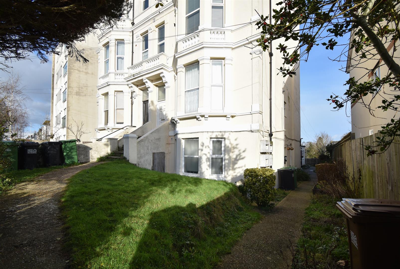 A deceivingly spacious ONE BEDROOM APARTMENT enviably positioned in a CENTRAL ST LEONARDS location just moments from the local shops and eateries in Kings Road and Norman Road and within immediate walking distance of the beach and the mainline railway station. Positioned on the GROUND FLOOR of this period residence, the accommodation here is arranged as a BRIGHT OPEN PLAN LIVING SPACE where there is a MODERN FITTED KITCHEN providing ample storage and plenty of room for a full dining table. At the rear of the property, there is a DOUBLE BEDROOM which benefits from a WALK IN WARDROBE and a bathroom with a full width shower. Externally there is RESIDENTS OFF ROAD PARKING and PRIVATE FRONT AND SIDE GARDENS. Being sold with a SHARE OF FREEHOLD and NO ONWARD CHAIN, this fantastic property would make the PERFECT FIRST TIME HOME or seaside retreat.
