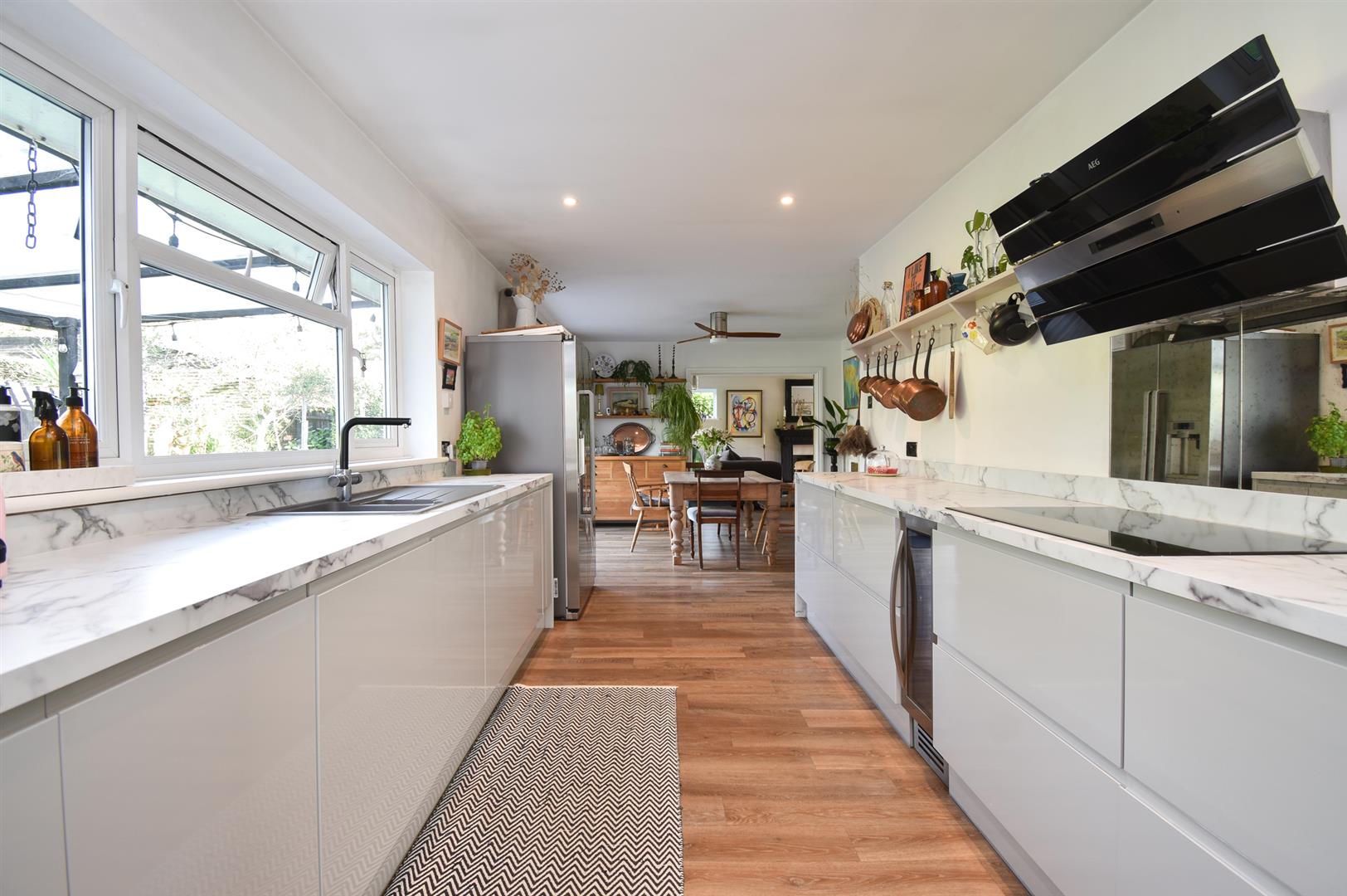 - Open plan kitchen and dining room