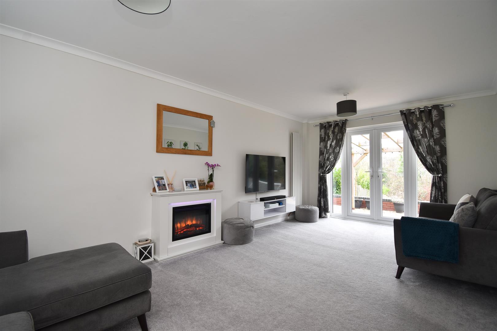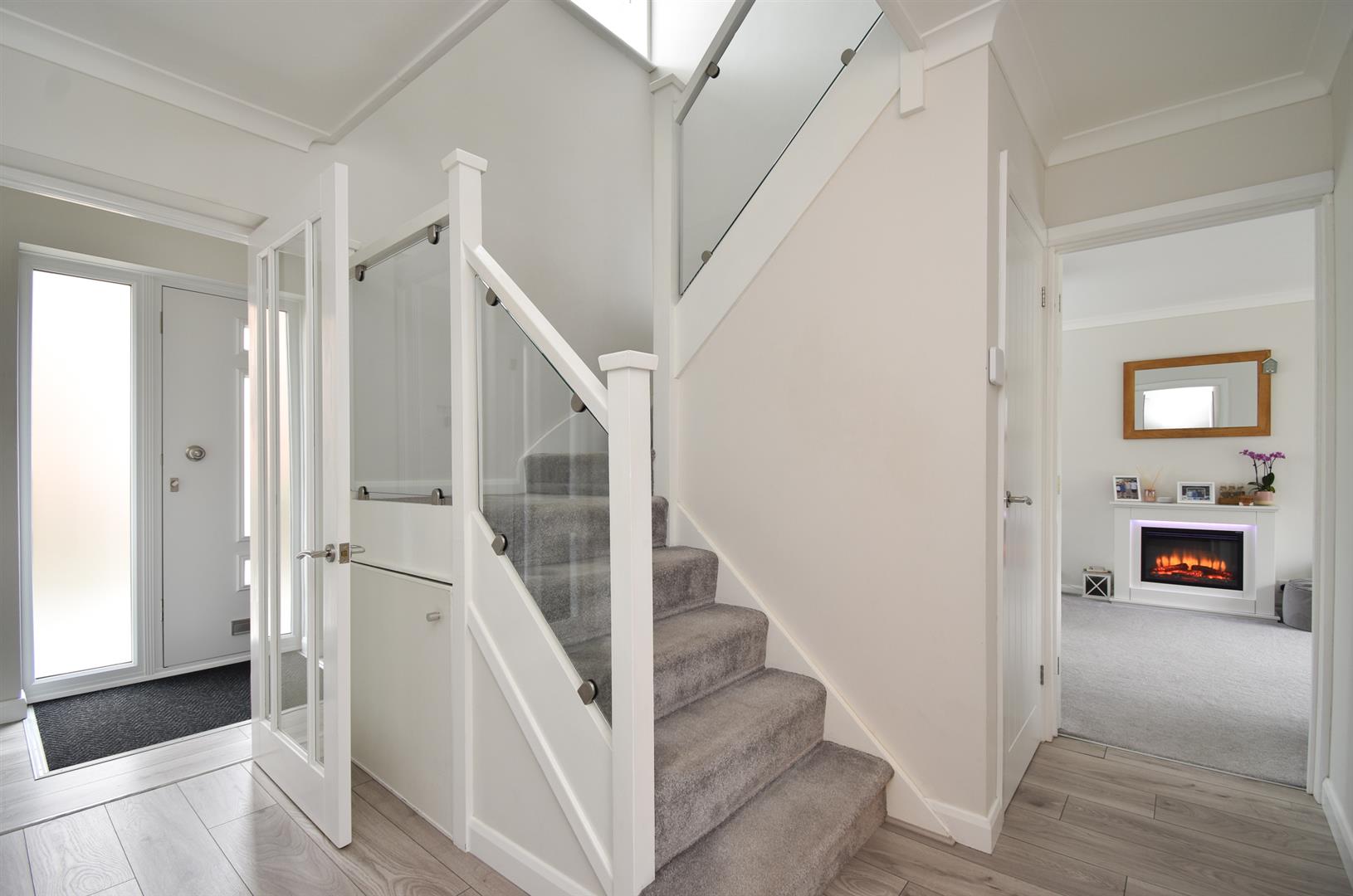 An exceptionally well presented FOUR BEDROOM, two bathroom family home with a DOUBLE GARAGE. It’s enviably positioned within a QUIET CUL-DE-SAC within easy reach of local shops, schools and good transport links. The accommodation has been refurbished to a high standard throughout, you enter in to a porch with a DOWNSTAIRS CLOAKROOM and in turn a welcoming entrance hall with stairs rising to the first floor encased in glass. There is a DUAL ASPECT LIVING ROOM with an electric fireplace and double doors leading out to the rear garden, the kitchen and dining space with an ADJOINING UTILITY ROOM. The kitchen is fitted with contemporary units housing integrated appliances including a fridge/freezer, oven and hob, there is plumbing in the utility room for a washing machine. The first floor houses four bedrooms, three of which are generous double rooms, together with a modern family bathroom. The main bedroom also benefits from BUILT-IN WARDROBES and an EN-SUITE SHOWER ROOM. Externally the private rear garden enjoys a large patio spanning the width of the property providing the perfect space to dine al-fresco, it’s bordered by a generous expanse of lawn. At the front of the house there is a lawned front garden and the DRIVEWAY provides off road parking giving access to the detached double garage which benefits from electric up and over doors.